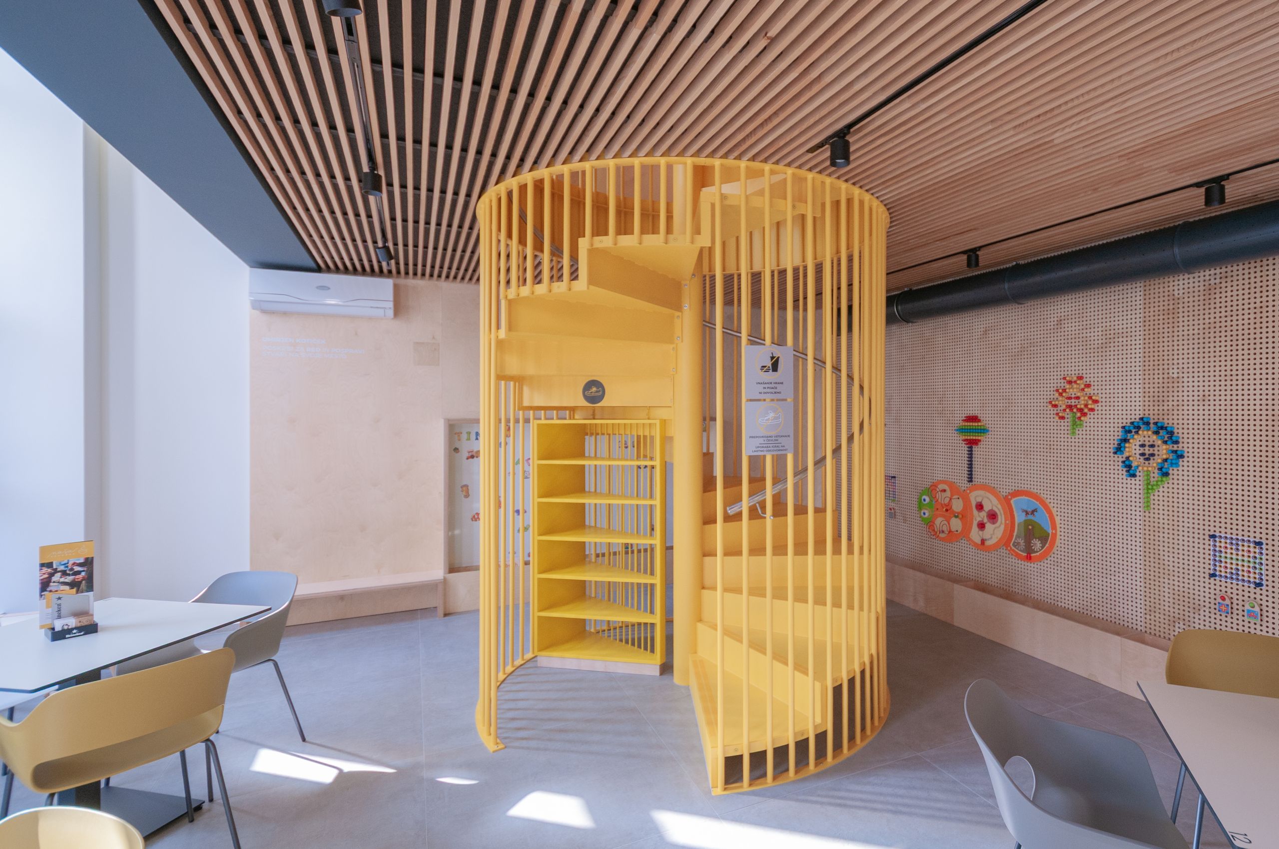 Poleg celovite notranje opreme smo izvedli tudi celostno grafično podobo ter vizualne komunikacije za lažjo navigacijo po objektu.