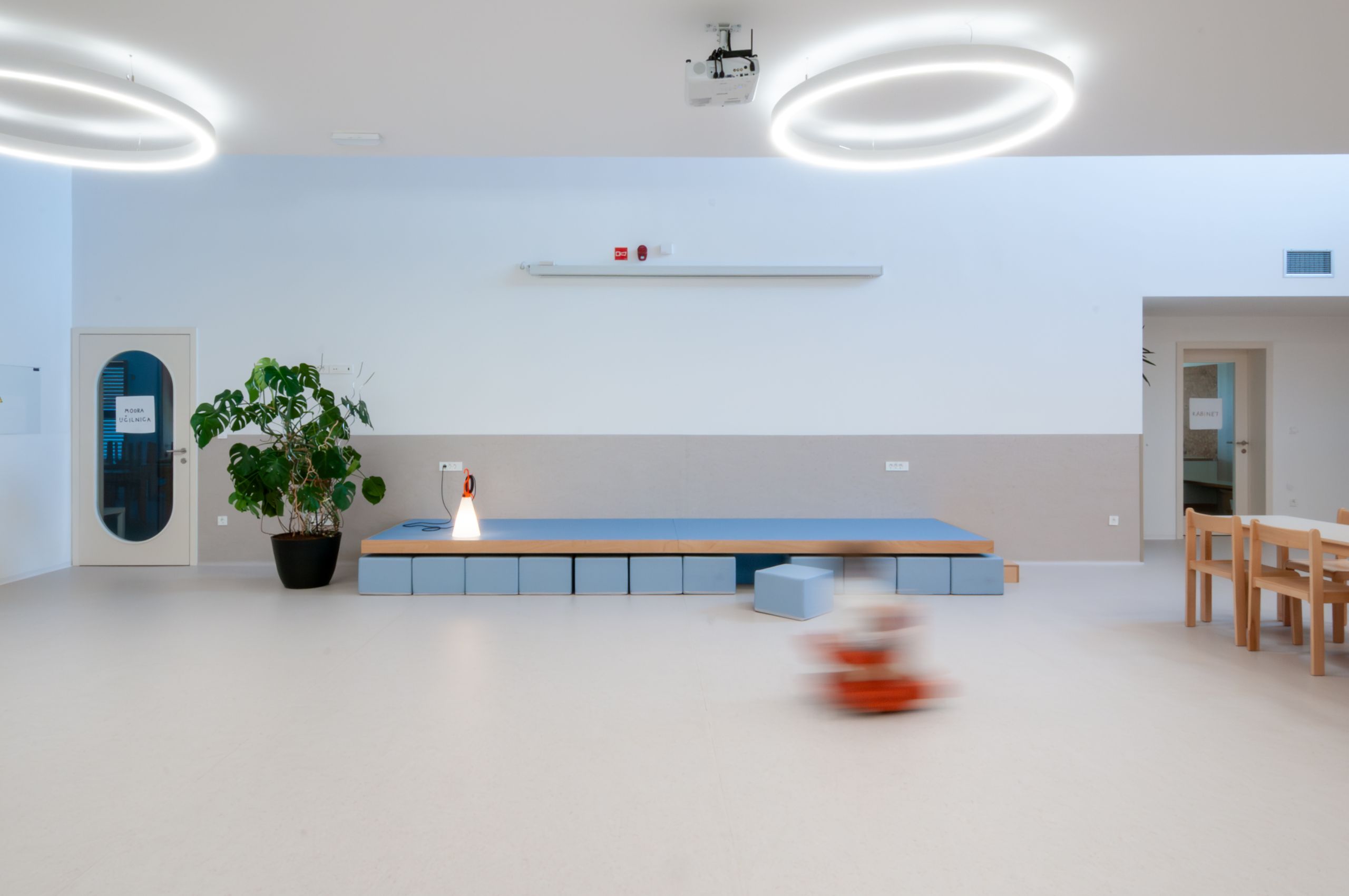 Občina Litija si je dolga leta želela izboljšati vzgojno-varstvene in izobraževalne pogoje v vasi Hotič. Obstoječa šola, kjer se izvaja pouk prvih petih razredov je bila stara preko sto let, dva oddelka vrtca pa sta bila začasno umeščena v neprimerne prostore gasilskega doma na dislocirani lokaciji ob glavni cesti Ljubljana -Litija. Nova večnamenska stavba je v celoti namenjena družbenim dejavnostim in združuje prostore podružne šole Hotič, dveh oddelkov vrtca, večnamenske telovadne dvorane, ki bo v uporabi tako šole kot vrtca, popoldne tudi krajanov ter prostore krajevne skupnosti Hotič.